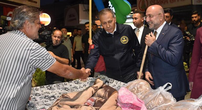 Bakan Yerlikaya, ilk olarak Saraçlar Çarşısı ve bedestende esnaf ziyareti gerçekleştirdi, vatandaşlarla bir araya geldi.