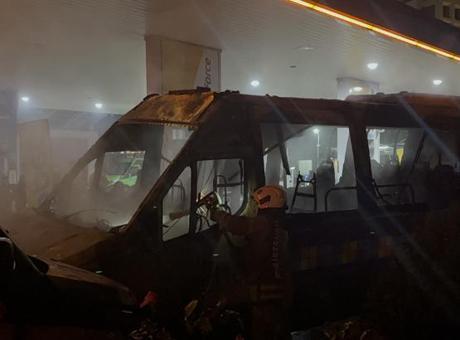 Yangın, saat 04:30 sıralarında Kağıthane Cendere Caddesi’nde meydana geldi. Henüz bilinmeyen bir sebeple cadde üzerinde bulunan benzin istasyonunda park edilmiş vaziyetteki 2 minibüs alev aldı.