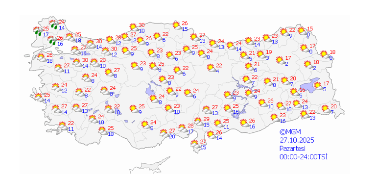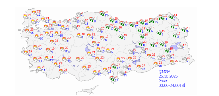 Yağışların; Edremit Körfezi ile akşam saatlerinden itibaren İstanbul ve zamanla Kocaeli, Sakarya, Düzce, Zonguldak ve Bartın çevrelerinde yer yer kuvvetli olması bekleniyor.