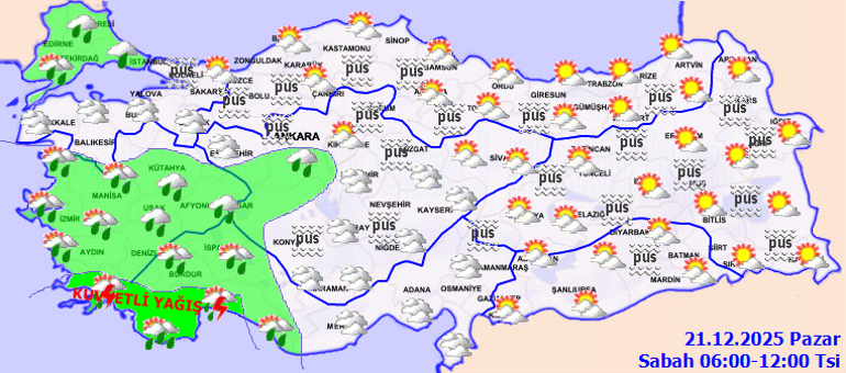Parçalı ve az bulutlu geçeceği tahmin ediliyor. Bölgenin iç kesimlerinde buzlanma ve don olayı ile birlikte pus, yer yer sis bekleniyor.