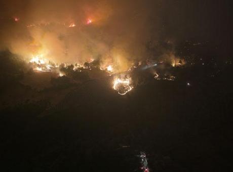 Yangın bölgesi ve mahallelere yangının ulaşma anları ise dron ile havadan görüntülendi.Görüntülerde yangının büyüyerek mahallelerdeki evlere ulaşması ve ekipler tarafından tahliye anları görüntülendi.Ayrıca tahliye edilen mahallelerde alevlere müdahale anları görüntülendi.